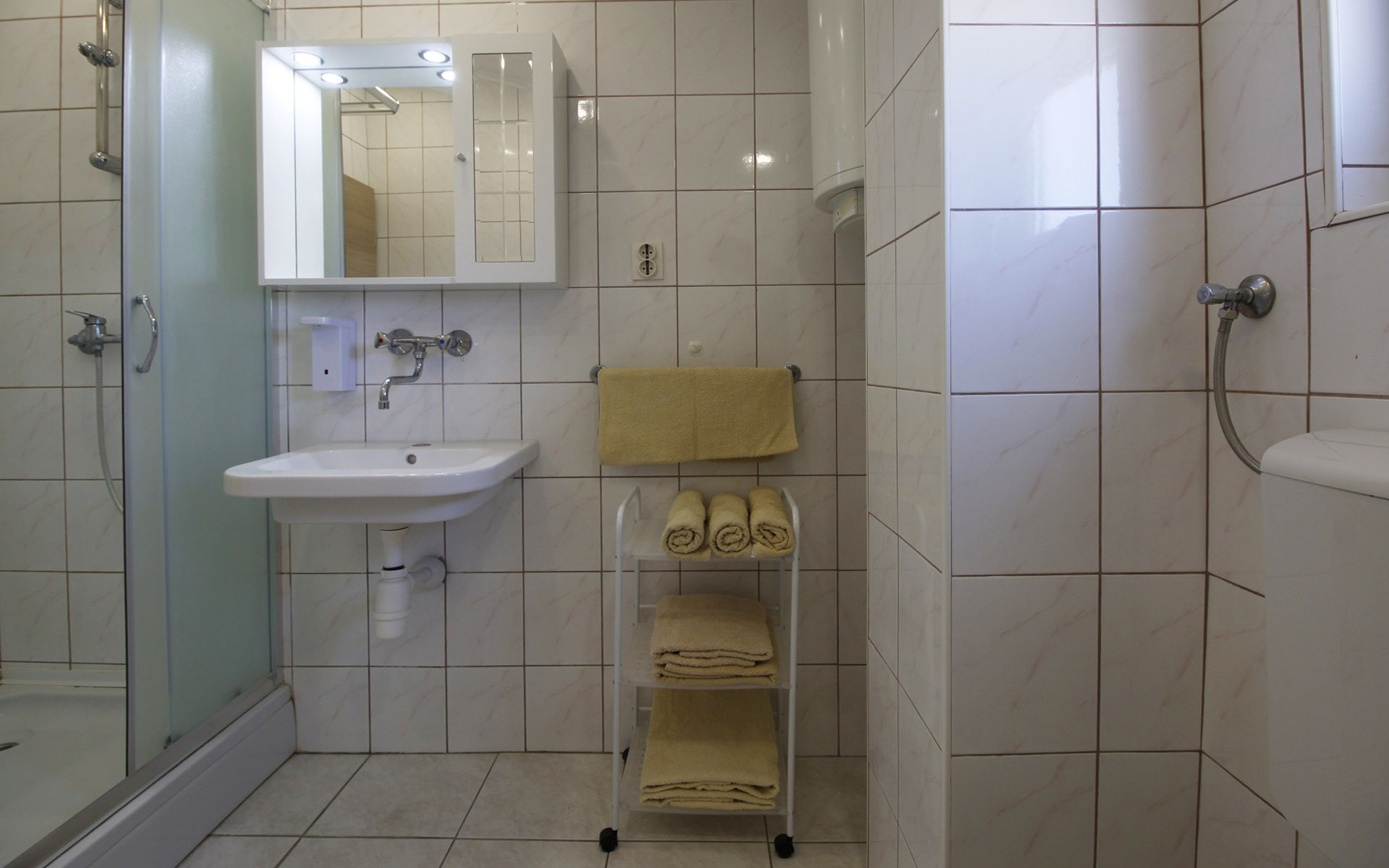Apartman "Seaview" za 4 osobe nalazi se na drugom katu kuće i idealan je za goste koji za svoj boravak u apartmanu žele potpuni mir i privatnost. Apartman se sastoji od dvije odvojene spavaće sobe sa velikim bračnim krevetima u kojima ćete uživati noćima. U potpuno opremljenoj kuhinji možete pripremiti sva jela koja poželite, te u blagovaonici uživati u njima. Ukoliko se želite opustiti u popodnevnim satima ili pogledati najnovije novosti, možete prileći na kauč i na velikom LED TV-u pratiti sve domaće Hrvatske tv kanale ili satelitske strane kanale. Velika i prostrana kupaonica sa WC-om će vam pružiti sve za vašu higijenu. Najatraktivniji dio apartmana je velika dijelom natkrivena terasa tako da vam pruža izbor želite li jednostavno nakon ručka sjediti u lounge garnituri i piti kavicu i sok ili ćete poslijepodne provesti sunčajući se na otvorenom dijelu terase zaštićeni od pogleda. Ispred kuće je veliko zatvoreno dvorište idealno za djecu da se nesmetano poigraju, te veliki parking natkriven sa nadstrešnicom gdje će vaš automobil biti zaštićen od sunca i ljetnih vrućina. Ljubazni domaćin je stalno na raspolaganju ukoliko vam je potrebna bilo kakva pomoć.